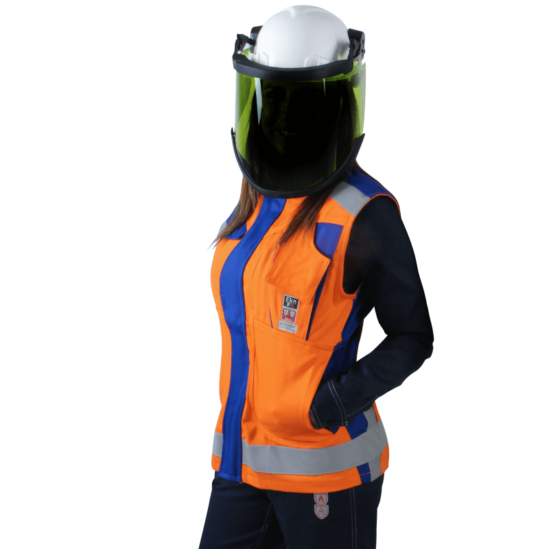 Este modelo está destinado para proteger a las trabajadoras contra el fuego repentino y arco eléctrico. La tela empleada tiene sello oeko-tex® y certificado UL bajo norma NFPA 2112 y ASTM 150