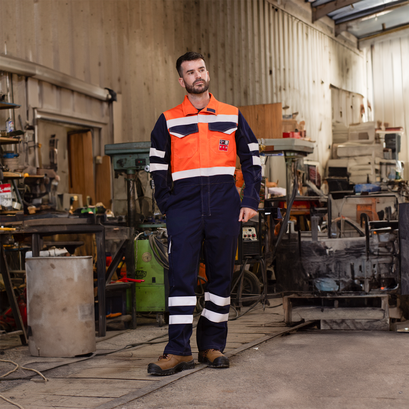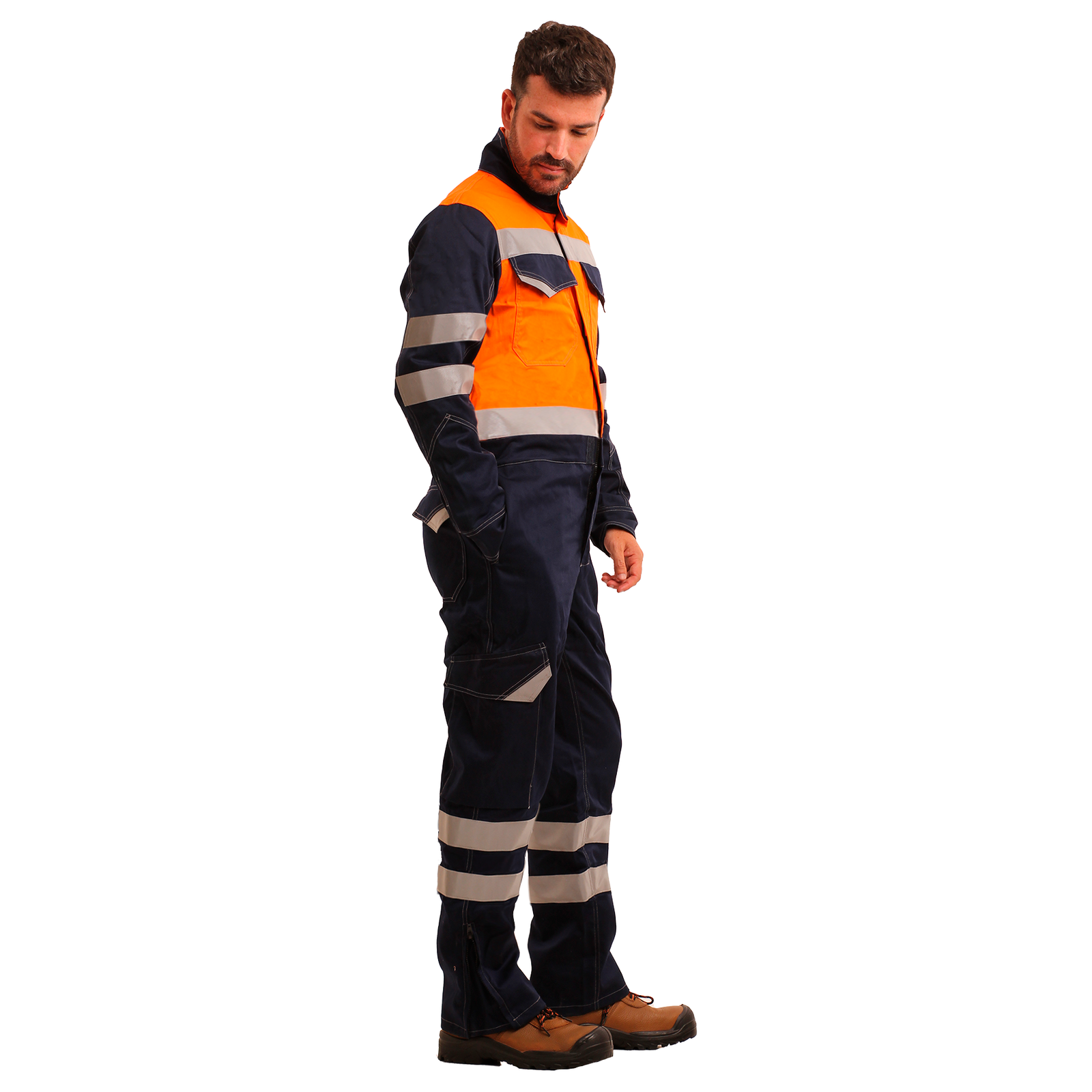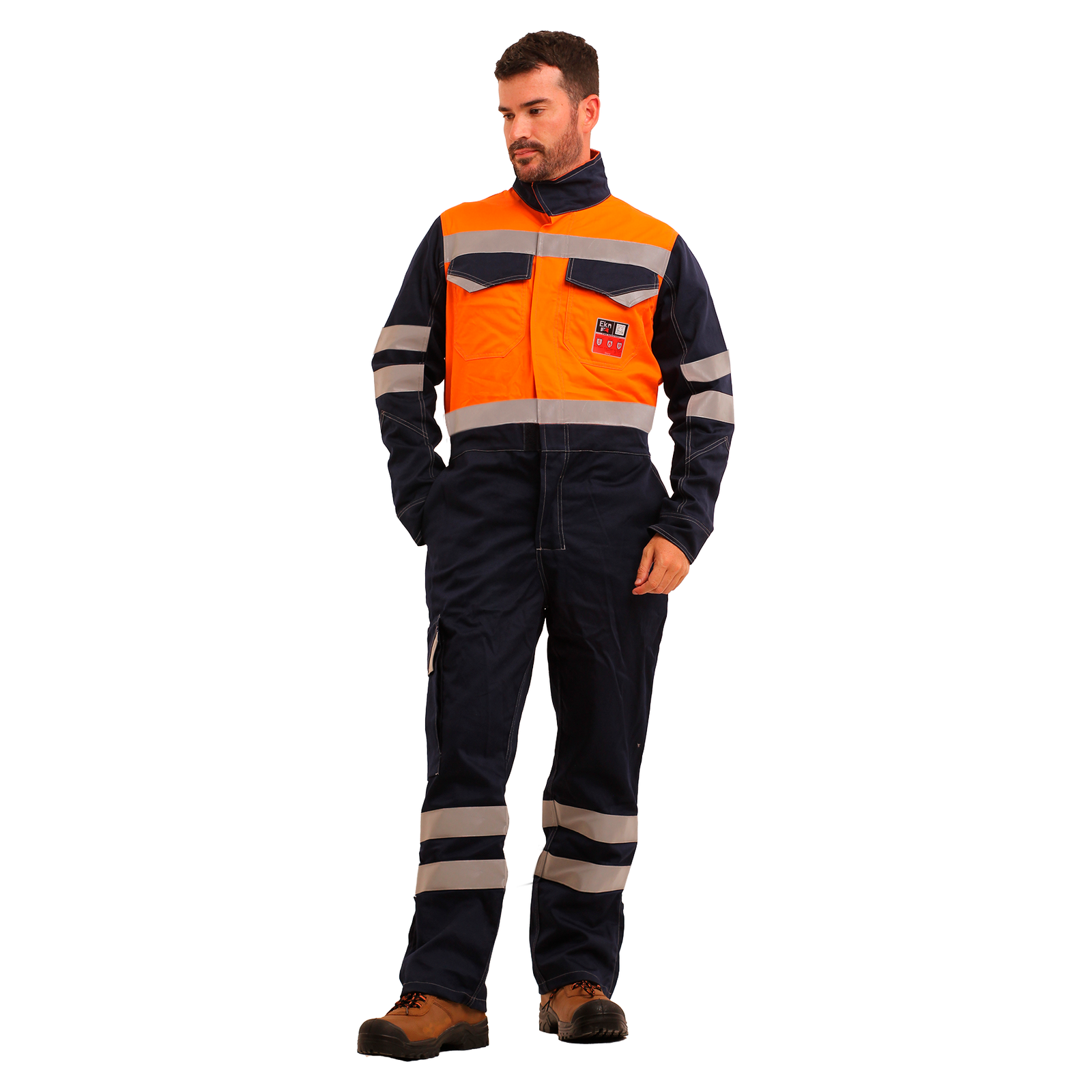 Este modelo ignífugo es una prenda que cubre todo el cuerpo, diseñada para ofrecer máxima protección y comodidad en entornos de alto riesgo. La cintura elasticada garantiza un ajuste perfecto al cuerpo. Su diseño es altamente funcional, contando con bolsillos laterales, superiores y traseros. Posee un ajuste regulable en los puños y el ruedo de las piernas para adaptarse a las necesidades del usuario. Equipada con mayor reflectante que mejoran la visibilidad en condiciones de baja luz.Este overol combina resistencia al fuego con una protección destacada frente a la acumulación de carga electroestática, evitando la atracción de partículas en suspensión y la emisión de chispas. Ideal para aquellos expuestos a riesgos de explosión y arco eléctrico.