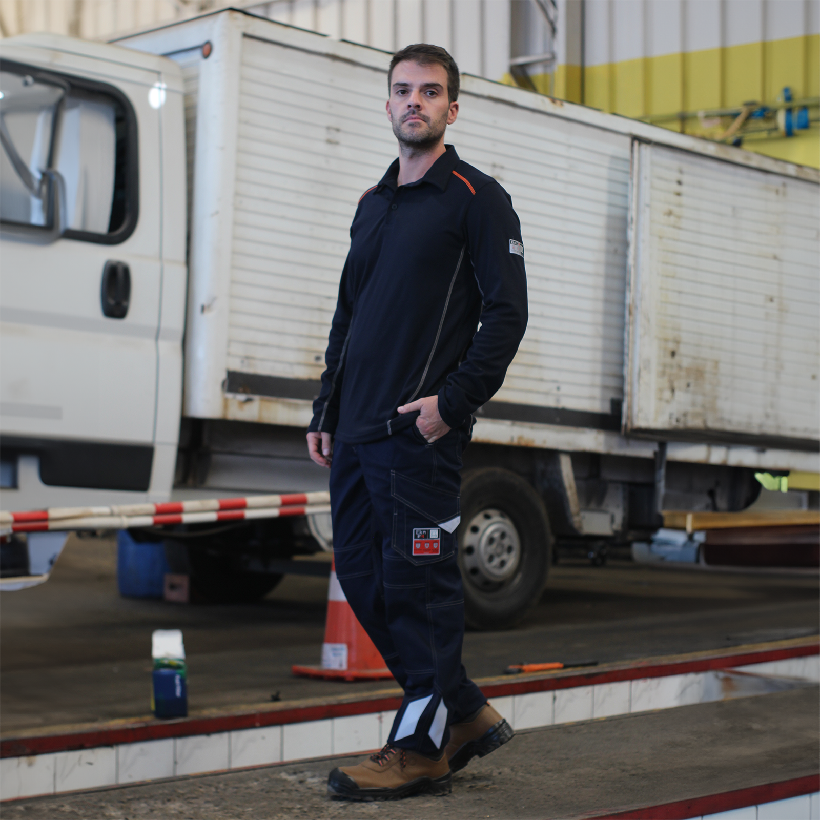 Esta polera con cuello camisero y dos botones se destaca no solo por su protección, sino también por su comodidad y adaptabilidad al cuerpo. Las costuras decorativas en diferentes tonos resaltan su atractivo visual. Su tejido ignífugo no solo ofrece protección contra la llama, sino que da una sensación cómoda durante su uso.